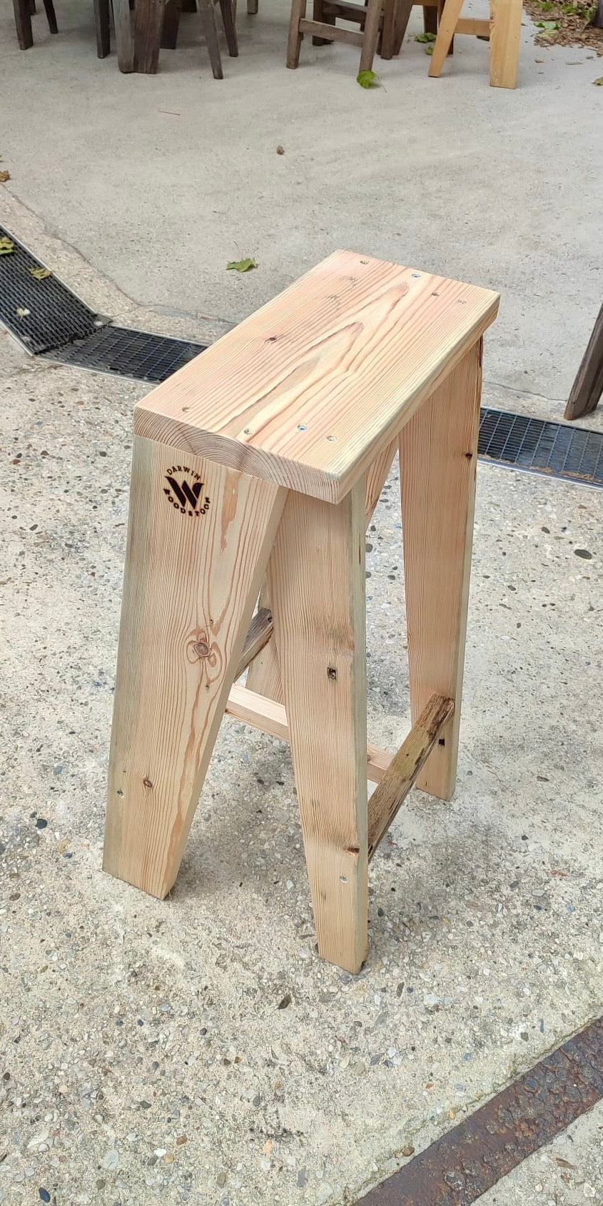 Tabourets hauts en pin massif, réalisés à partir de bois récupéré sur des chantiers de déconstruction. Chaque tabouret est une pièce unique, avec ses nuances, ses traces du temps, et son charme brut. Idéal pour un bar, un îlot central, un atelier ou un espace de coworking.